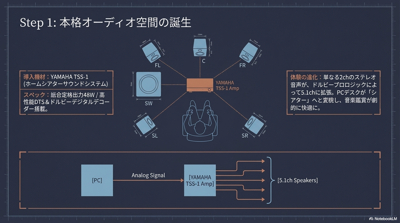簡易ホームシアターサウンドシステムを購入。音質が向上し、PCでの音楽鑑賞が快適に。